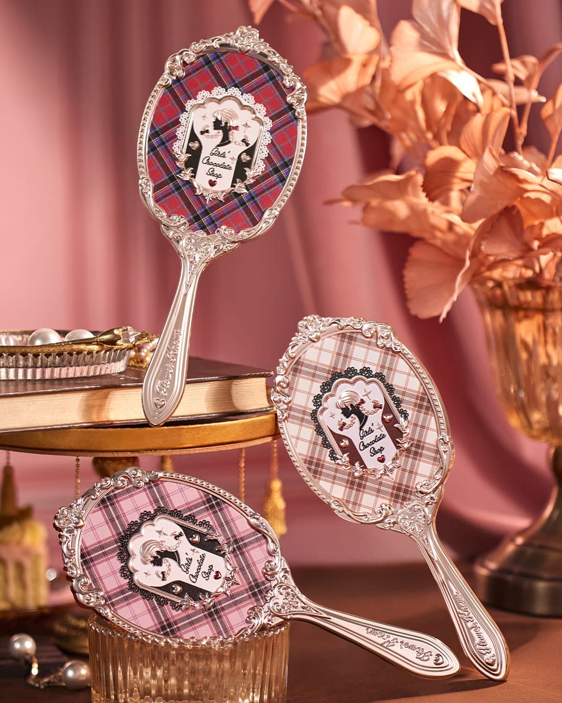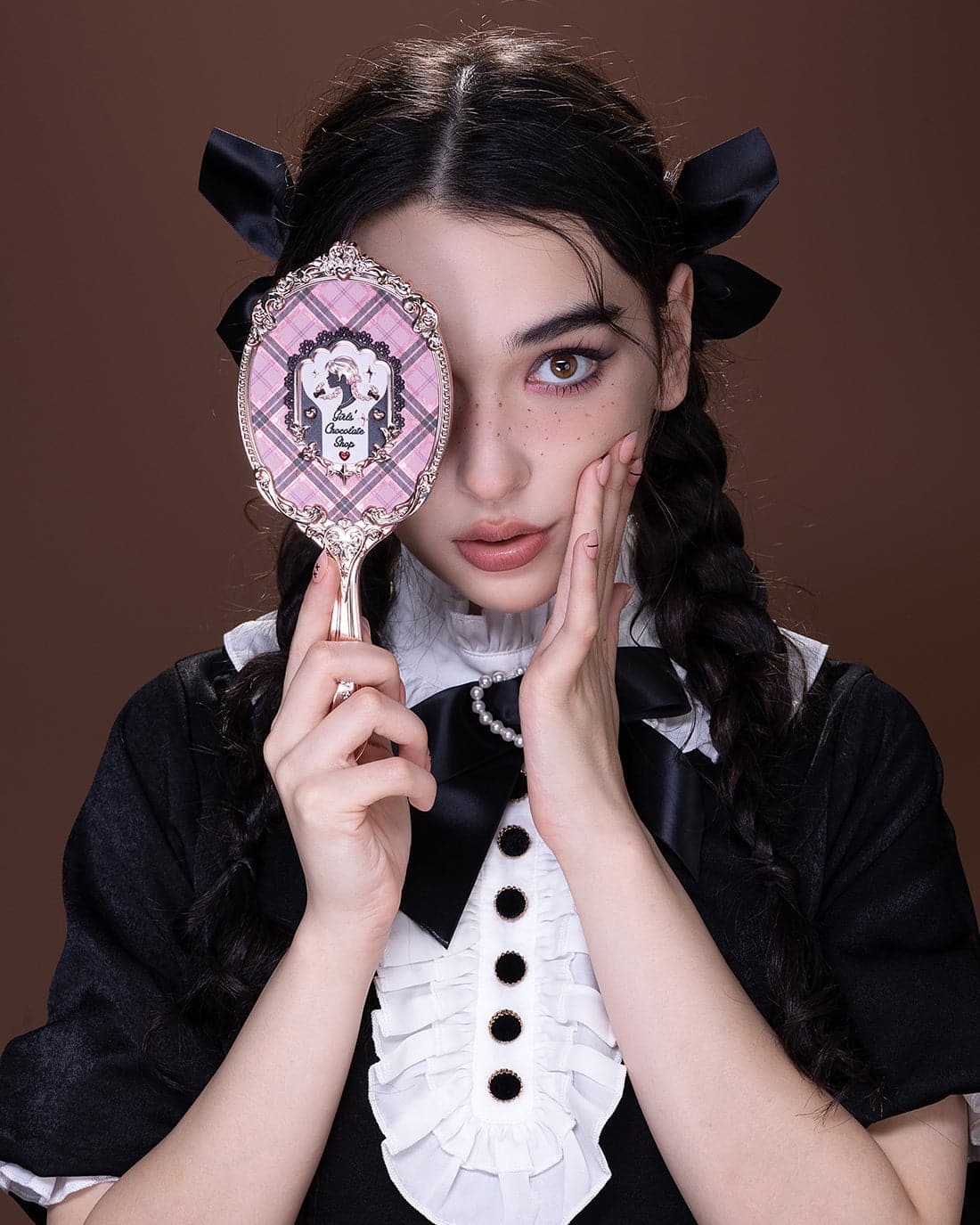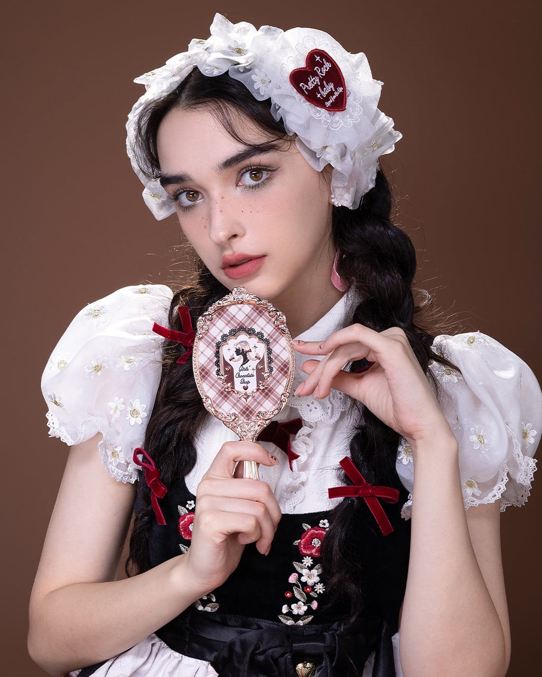 🪞 Inspired by the british plaid, and the silhouette portrait of a girl with a twist braid is the core design focus, combination of gold lattice, and lace elements of clothing;